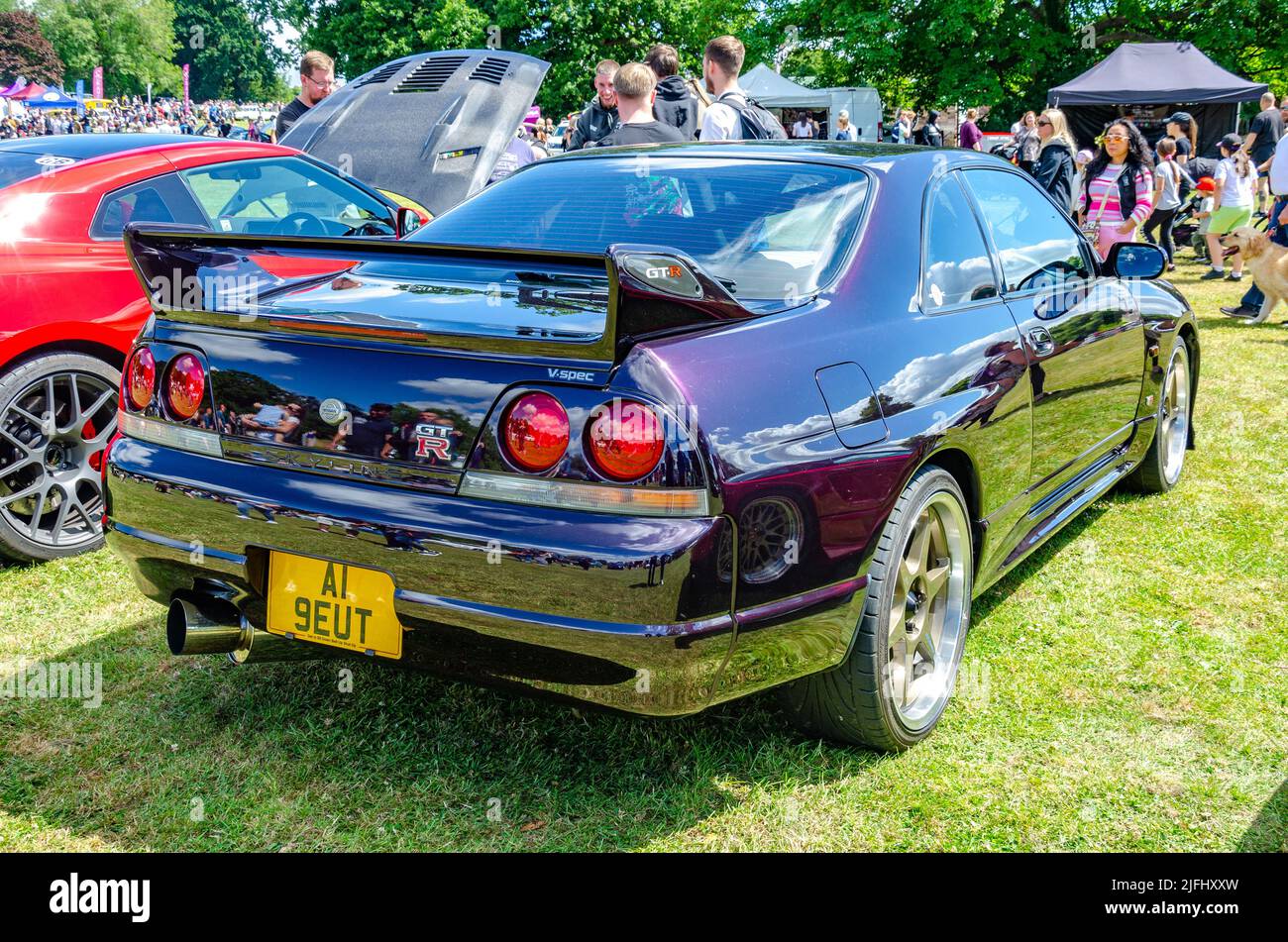 Rear view of a 1996 Nissan Skyline GT-R in purple at The Berkshire Car Show in Reading, UK Stock Photo - Alamy