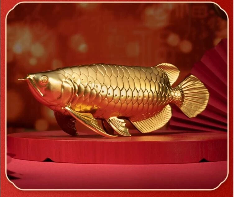 China Pure bronze 24K Gold 100% Hand-carved Lucky Gold Arowana fish Art Statue | eBay