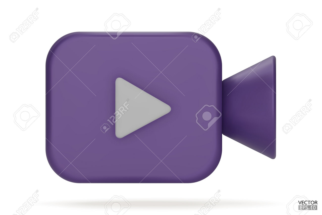 Lila Videokamera-Symbol Isoliert Auf Weißem Hintergrund. 3D-realistische Filmsymbol-Wiedergabetaste Für Die Schnittstelle Von Anwendungen Und Webseiten. Video-Streaming-Multimedia-Konzept. 3D-Vektorillustration Lizenzfrei nutzbare SVG, Vektorgrafiken ...