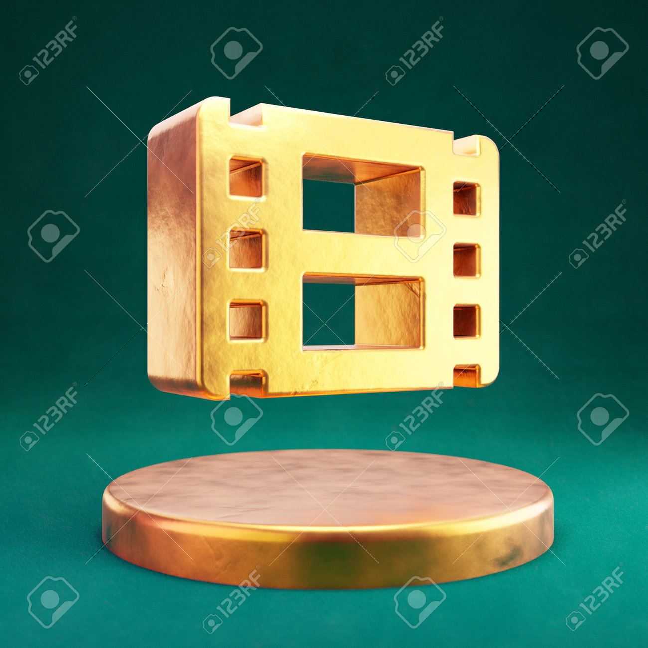 Film Icon. Yellow Gold Film Symbol on Golden Podium Stock Illustration - Illustration of glossy, film: 208095319
