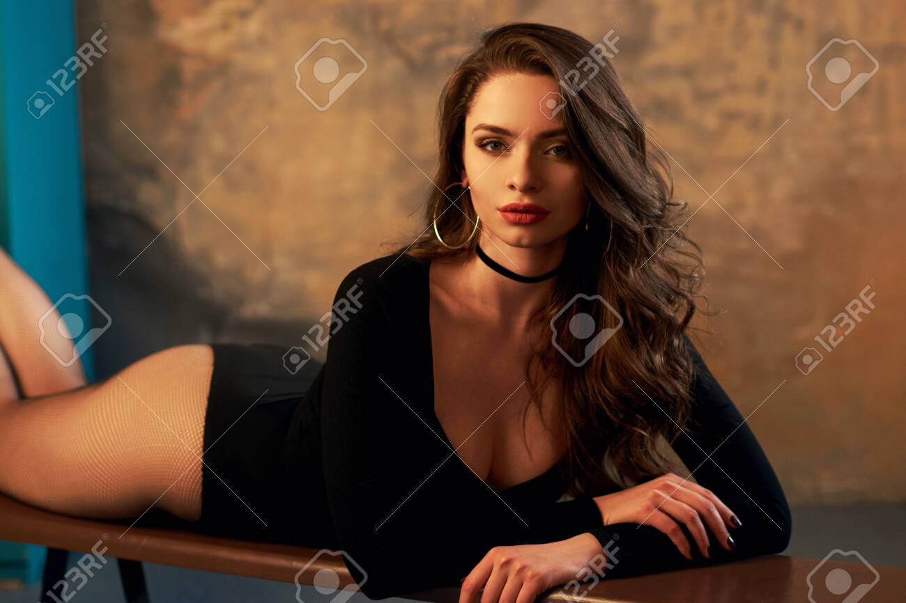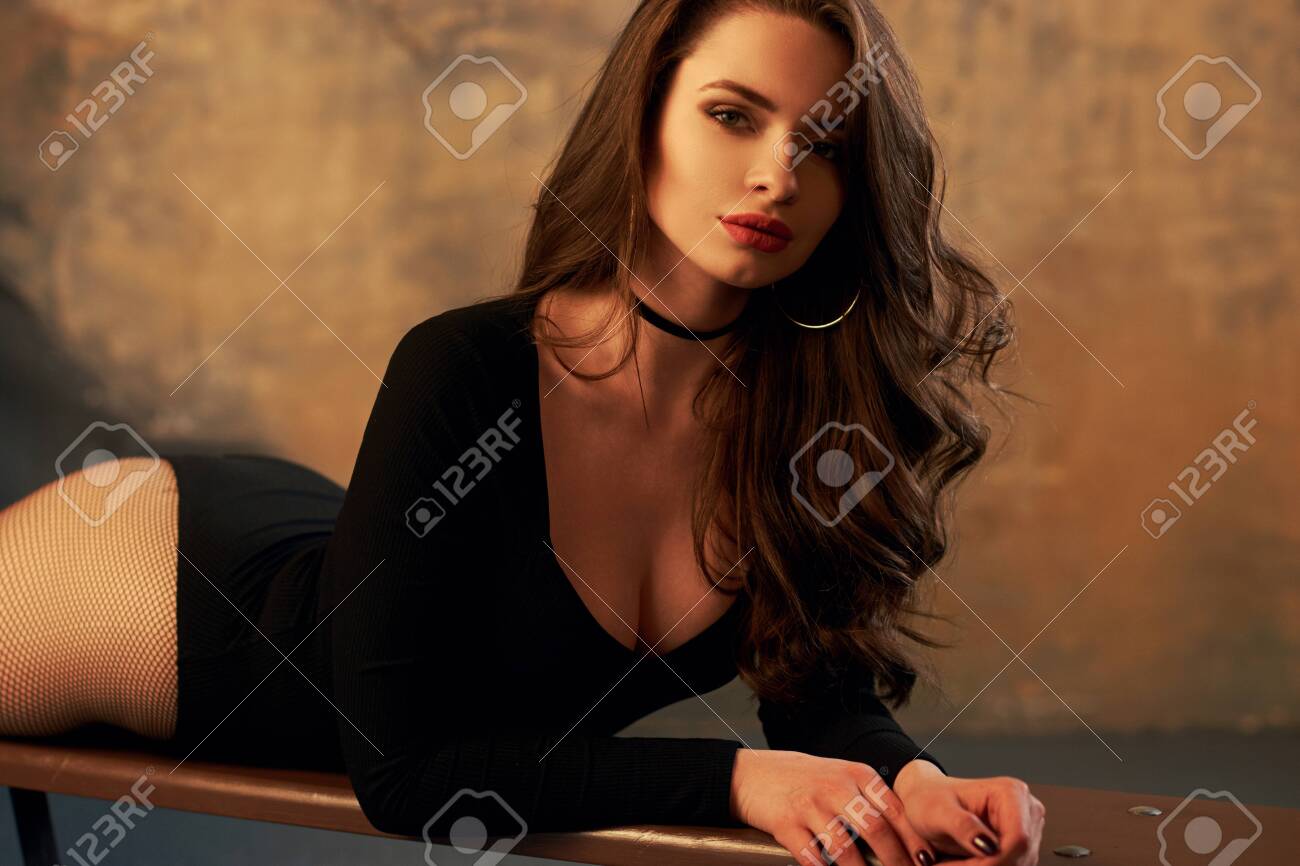 Schönes Mädchen Mit Dem Brünetten Welligen Haar, Das Auf Einer Holzbank Im Grunge-Fitnessstudio Liegt. Modeporträt Der 90er Jahre. Lizenzfreie Fotos, Bilder und Stock Fotografie. Image 131131409.