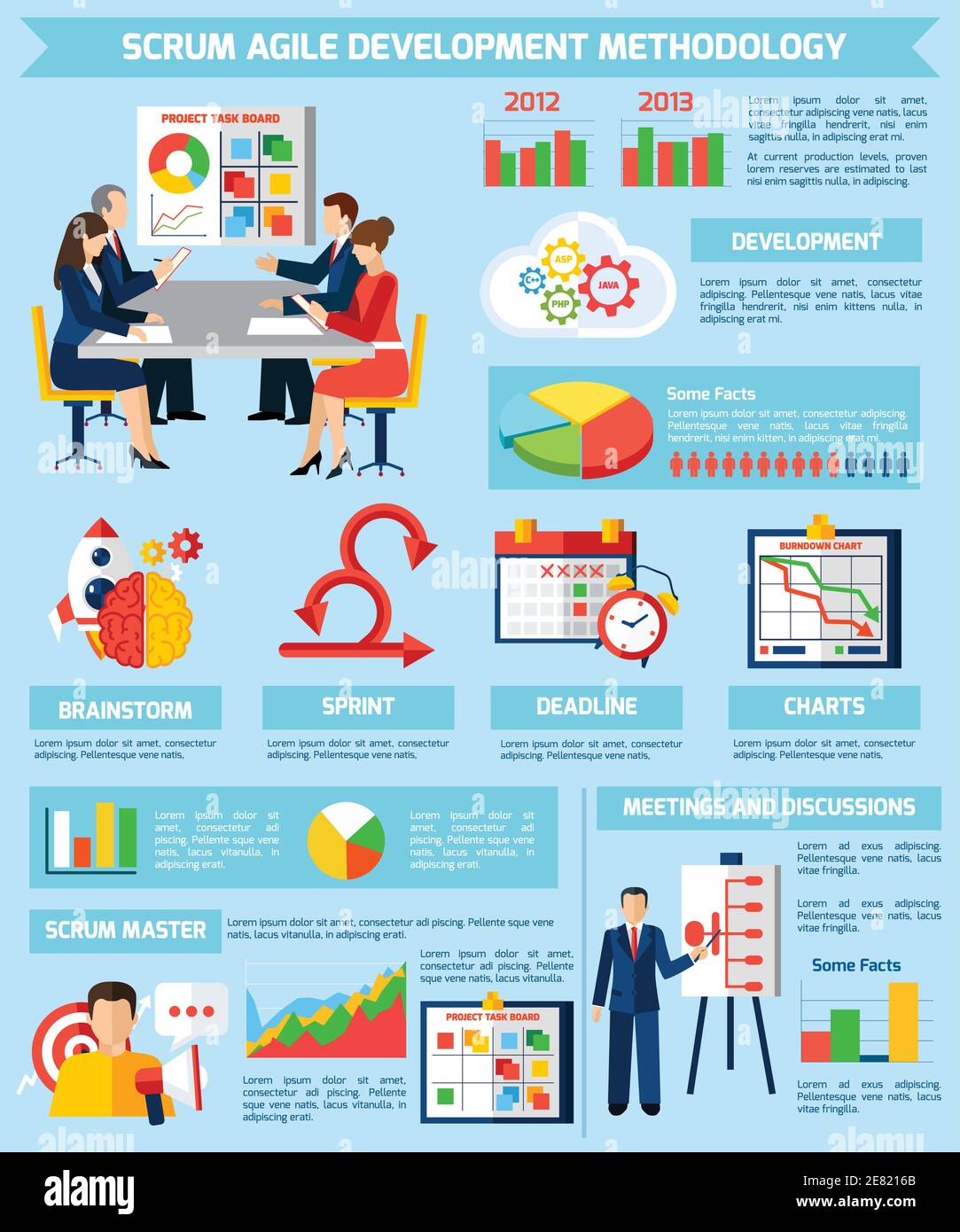 Scrum agile Entwicklungsmethodik und Projektmanagement Infografik flaches Poster Mit Informationsstatistiken und Diagrammen Vektordarstellung Stock-Vektorgrafik - Alamy