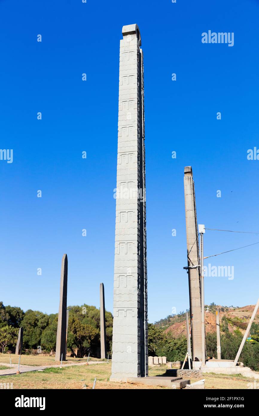 Ancient monolith stone obelisk, symbol of the Aksumite civilization in city Aksum, Ethiopia. UNESCO World Heritage site. African culture and history p Stock Photo - Alamy
