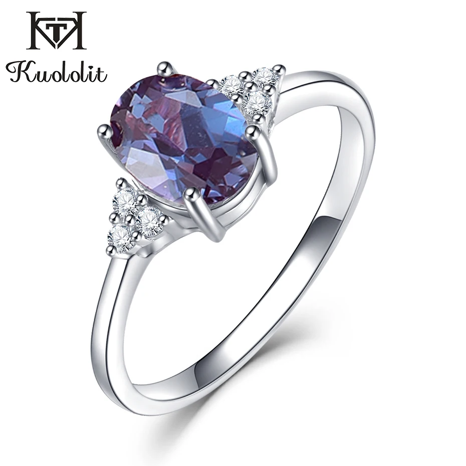 Kuololit 1,5 CT lab grown Alexandrit Edelstein Ring für Frauen Echt 925 Sterling Silber Ring 585 rose gold Oval alexandrit ringe - AliExpress
