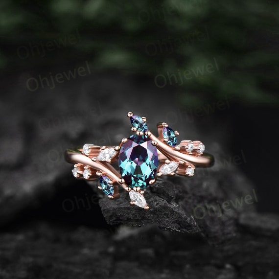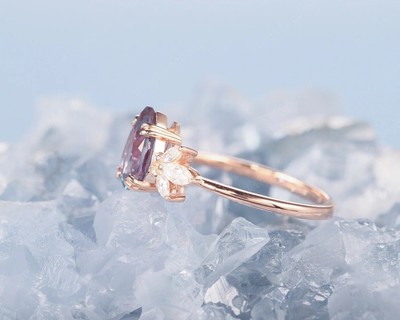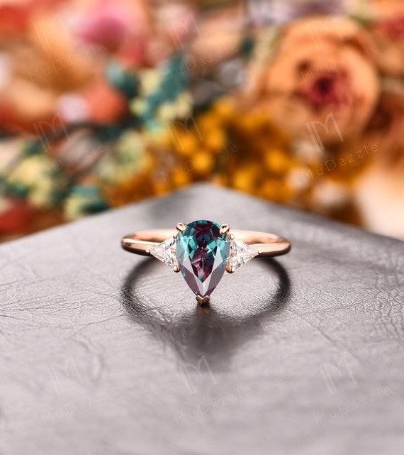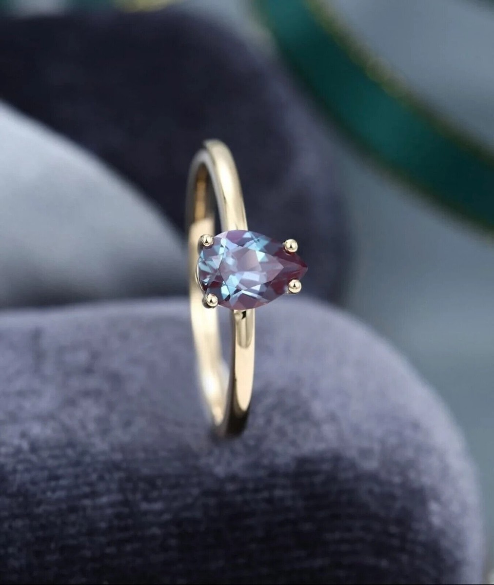 Color Change Alexandrite Ring for Women Unique Vintage Pear Shaped Alexandrite Engagement Ring 14k Rose Gold Minimalist June Birthstone Ring - Etsy Israel