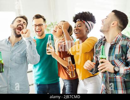 Anstoßende gläser mit alkohol und anstoßparty | Premium-Foto
