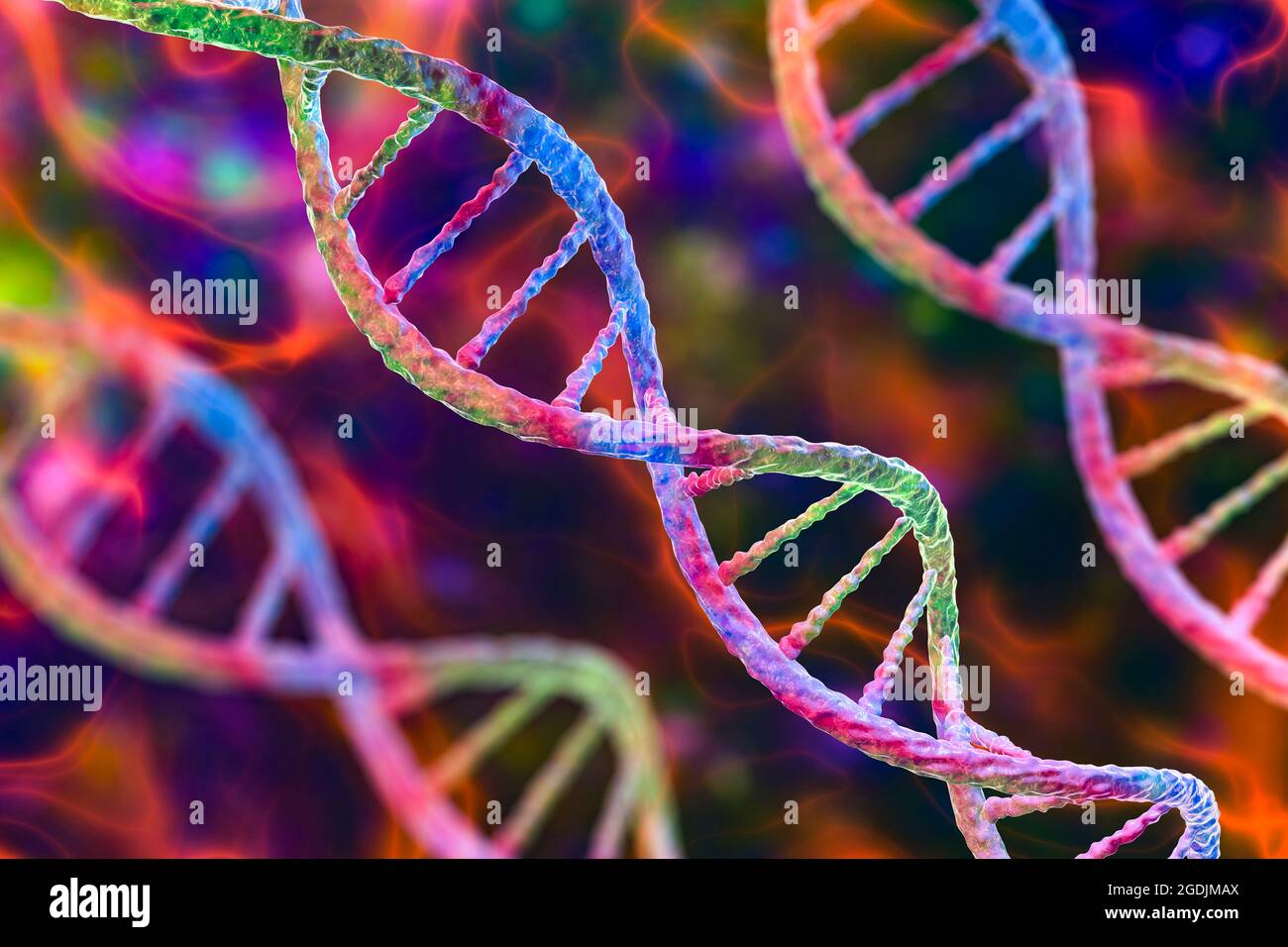 DNA, Deoxyribonucleic acid, structure of double helix molecule ...