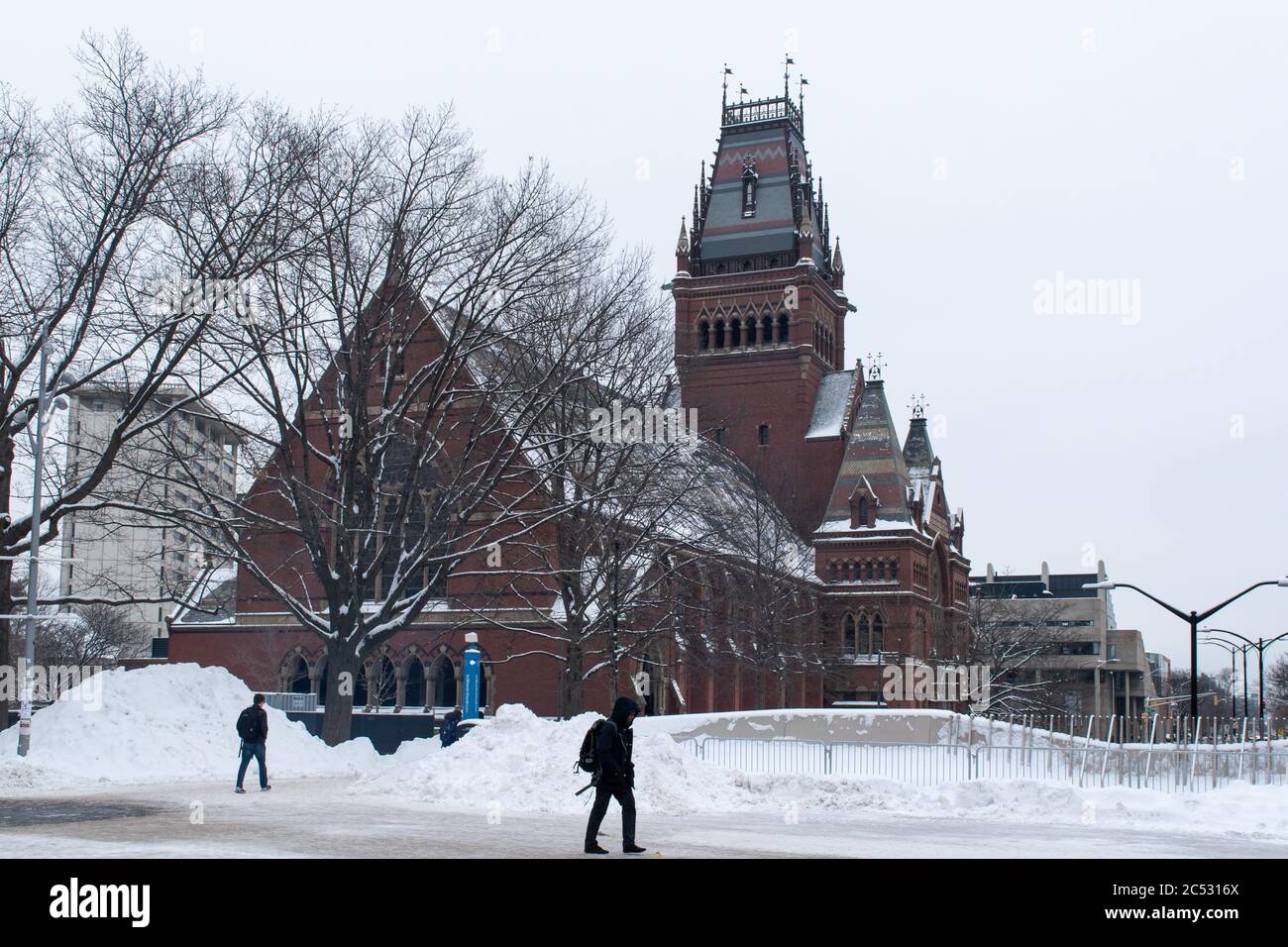College students tread snow through Harvard University on a frozen winter day. Annenberg Hall pictured in the background Stock Photo - Alamy