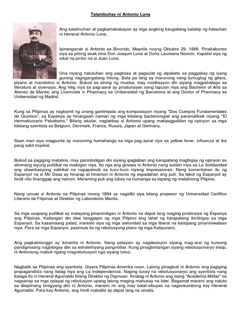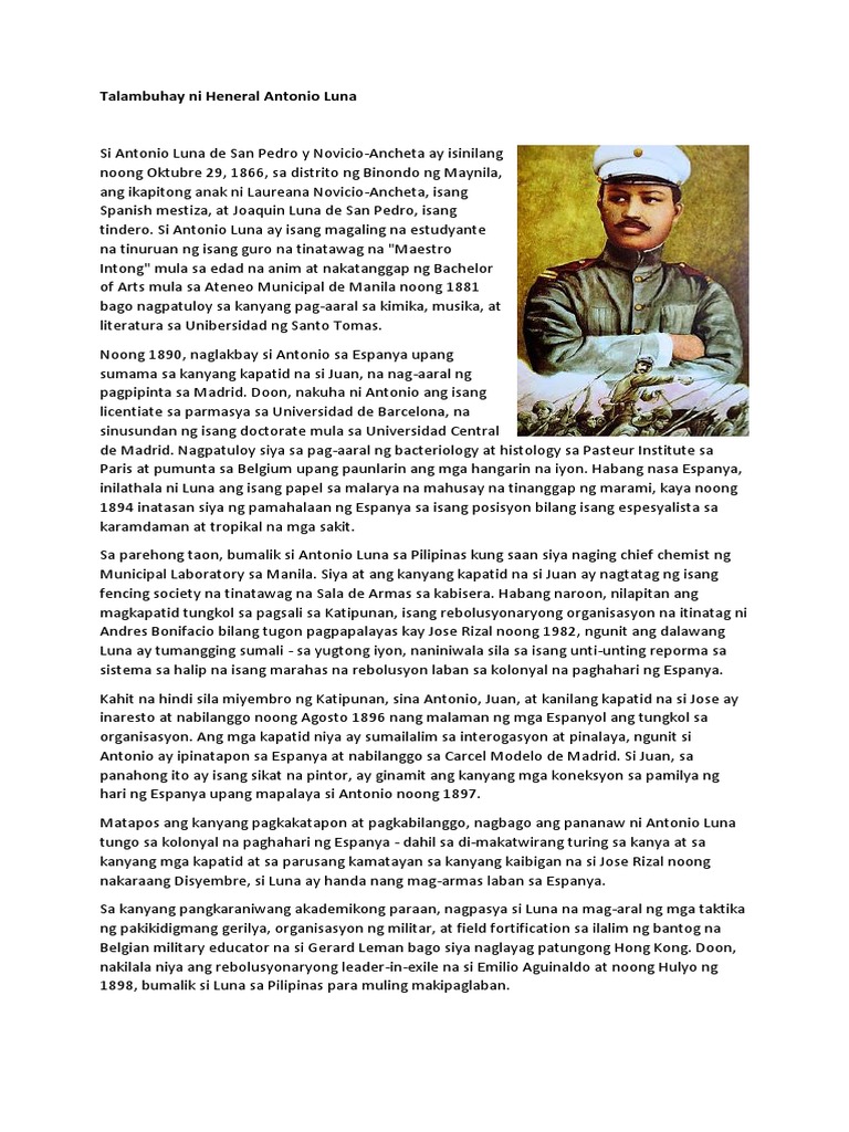 Talambuhay Ni Heneral Antonio Luna | PDF