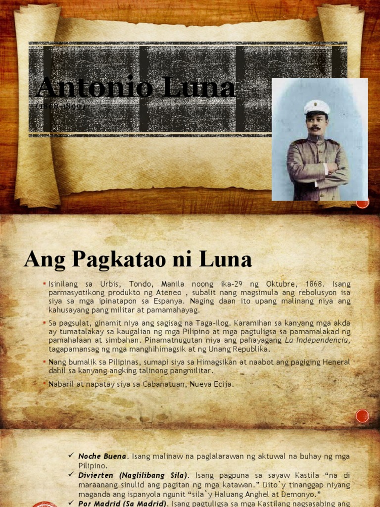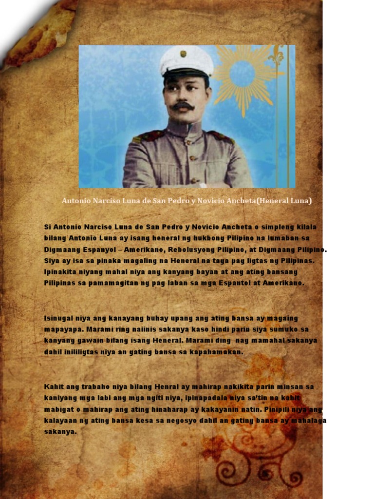 Antonio Luna (1869-1899) Dakilang Heneral Si Antonio Luna ay ipinanganak noong Oktubre 29, 1869 sa Urbis Tondo, Maynila, Kapatid niya ang kilalang pintor na si…