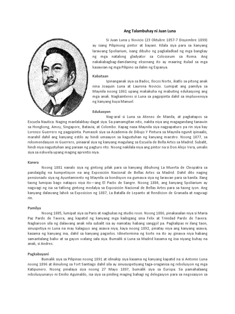 Talambuhay ni Juan Luna - Diana Mae Grace L. Amor Grade 7 – Laurel Araling Panlipunan 7 (Performance - Studocu