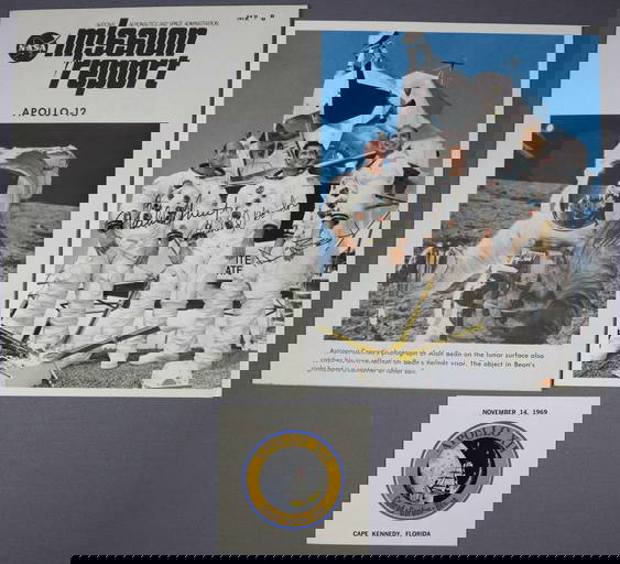 Apollo 12 Crew Signed Nasa Lithograph & Mission Book