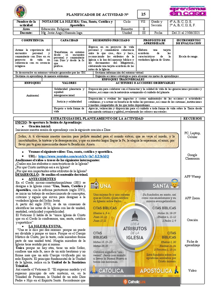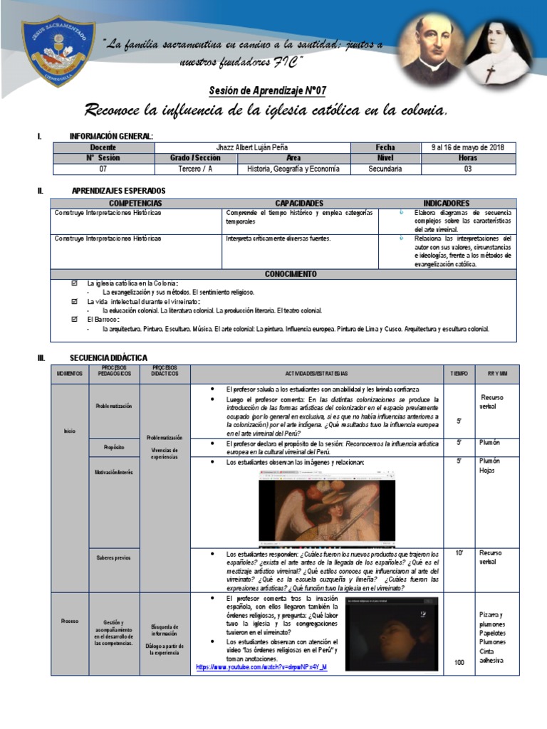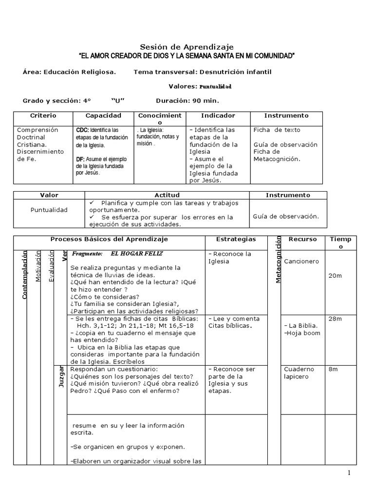 03 Sesión de Aprendizaje 3°4° Fund IGLESIA | PDF | Iglesia Católica | eucaristía