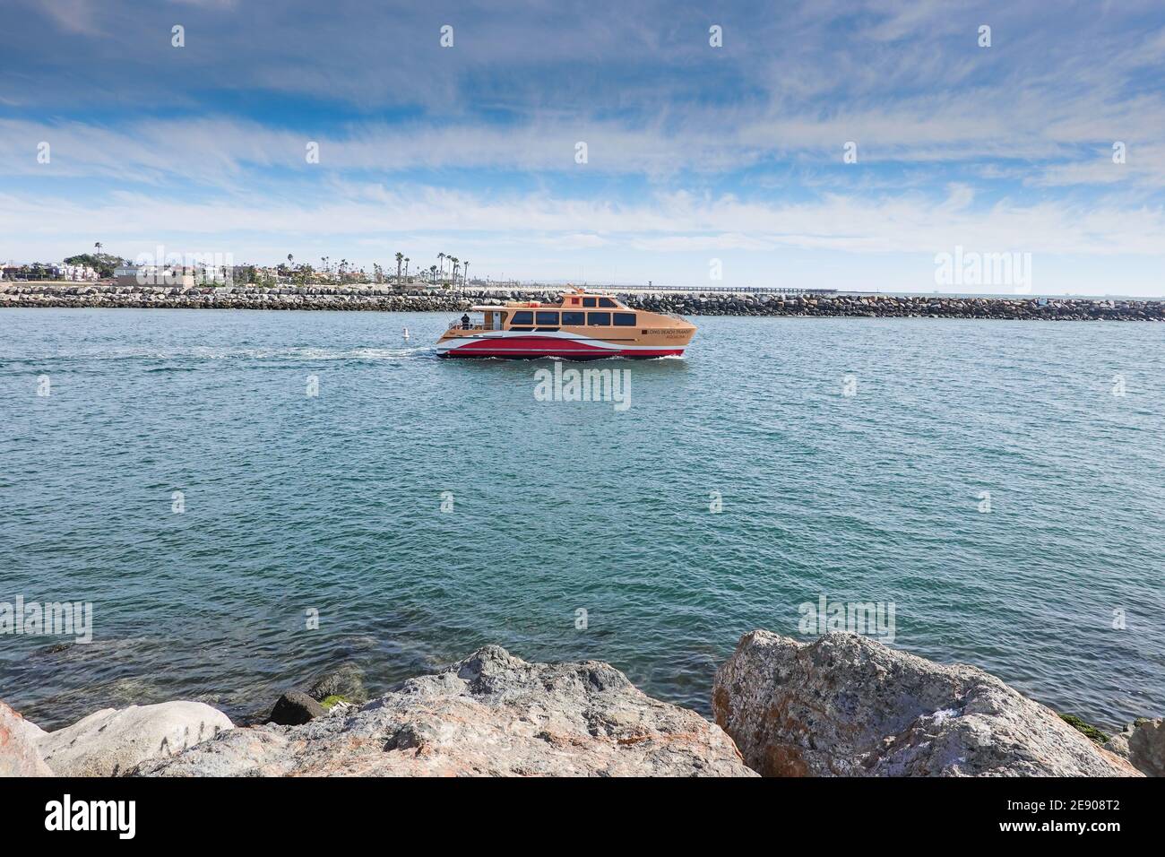 Aqualink Watertaxi a Long Beach Transit Catermaran and the Long Beach Skyline and San Pedro Bay California USA Stock Photo - Alamy