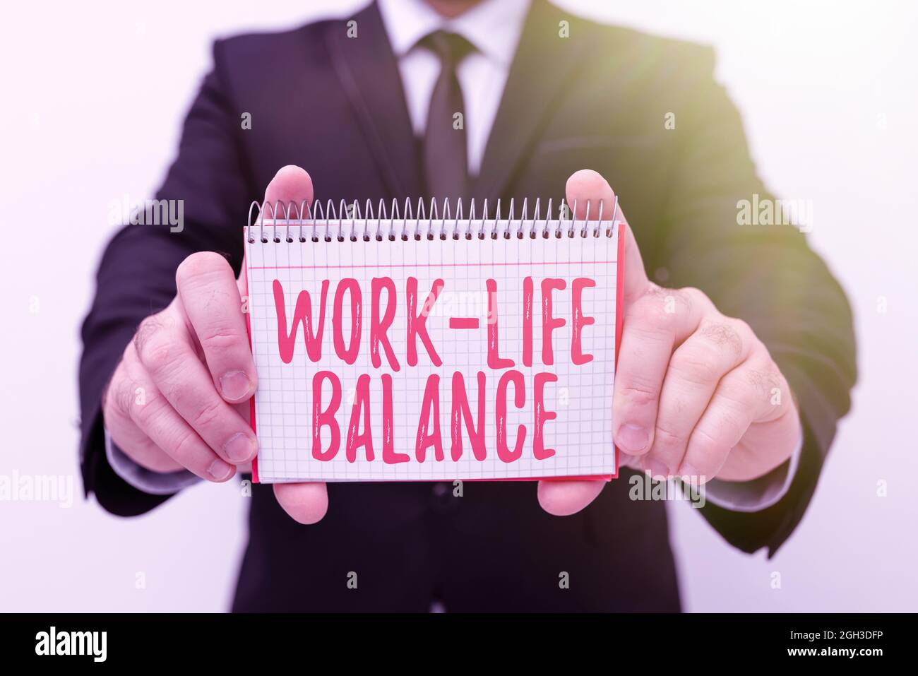 Hand schreiben Zeichen Work Life Balance. Geschäftsidee Zeit für die Arbeit und Aspekte des Lebens sind gleich präsentiert neue Pläne und Ideen demonstrieren Stockfotografie - Alamy