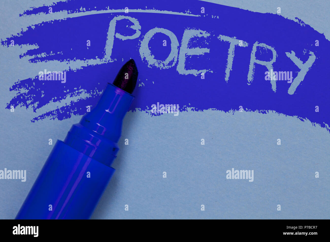 Schreiben Hinweis mit Poesie. Business Foto präsentiert literarische Arbeit Ausdruck von Gefühlen Ideen mit Rhythmus Gedichte schreiben fetten blauen Marker Färbung Stockfotografie - Alamy