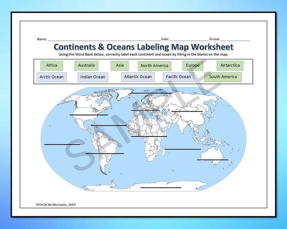 Kontinente & Ozeane Beschriftung Arbeitsblatt Karte Bearbeitbar DIGITAL DOWNLOAD - Etsy Österreich