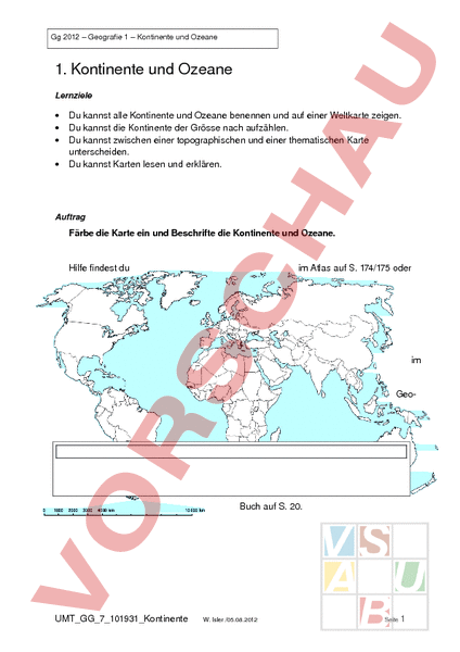 Kontinente und Ozeane Arbeitsblatt | öbv