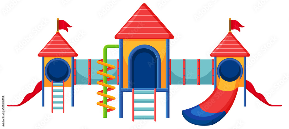A children playground slide set on white background Stock ...