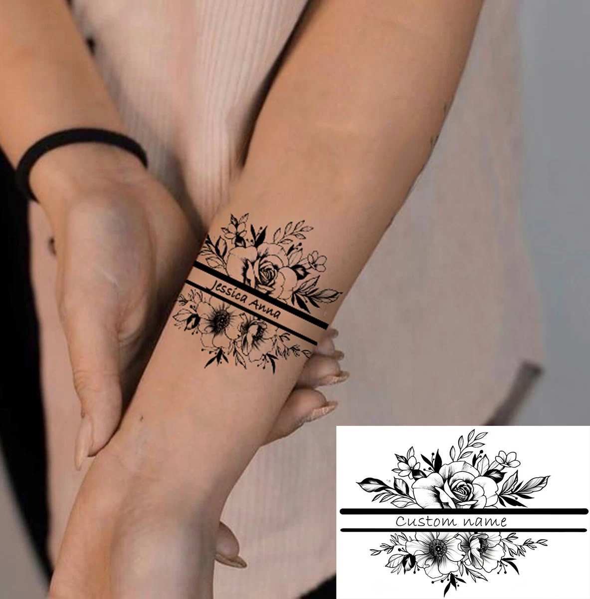 2xTrial Flowers Band Hand Temporary Tattoo Men Women Custom Name Fake Tattoo Arm | eBay