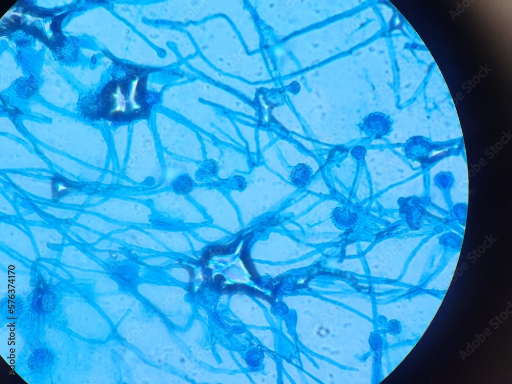 Microscopic view of Aspergillus niger stained with lactophenol ...
