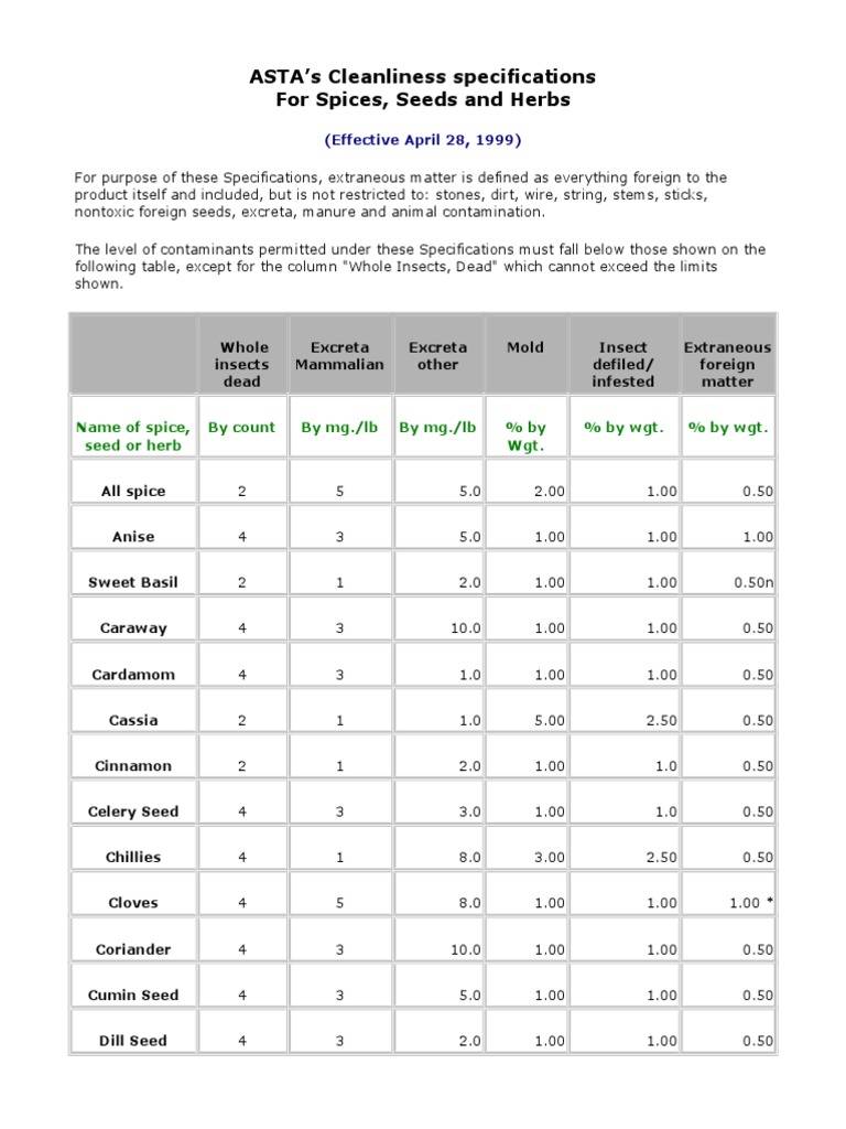 Cleanliness Specifications - ASTA: The Voice of the U.S. Spice Industry in the Global MarketASTA: The Voice of the U.S. Spice Industry in the Global Market