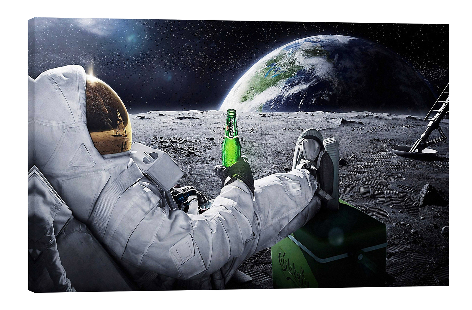 Lein-Wand-Bild: Astronaut auf Mond trinkt Carlsberg Bier (aus Werbung), 4 Größen | eBay
