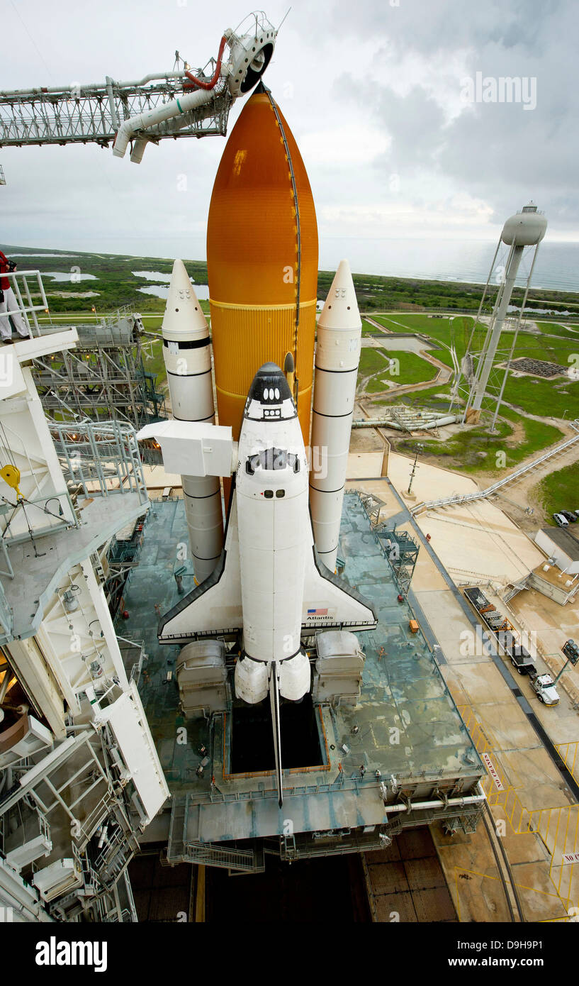 Space Shuttle Atlantis sulla rampa di lancio presso il Kennedy Space Center, Florida Foto stock - Alamy