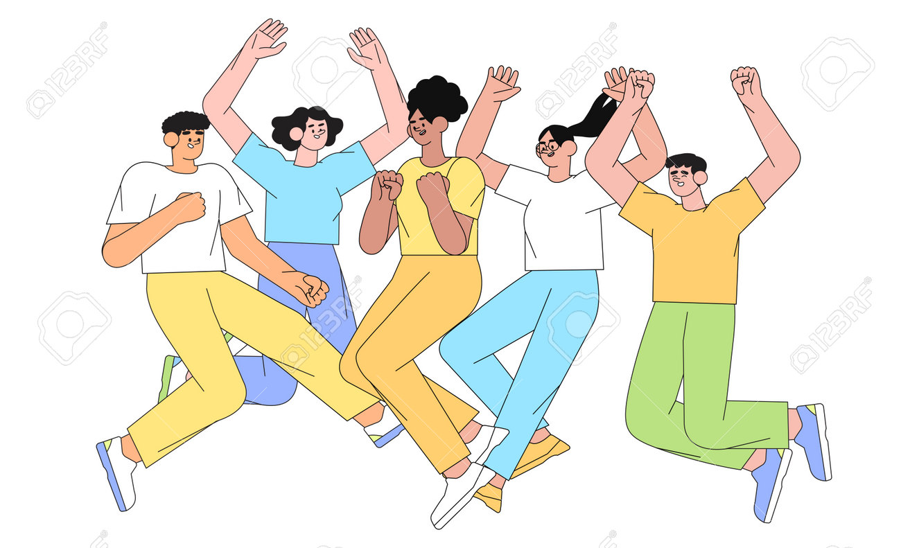 Glückliche menschen springen, freude, spaß haben 13132932 Vektor Kunst bei Vecteezy