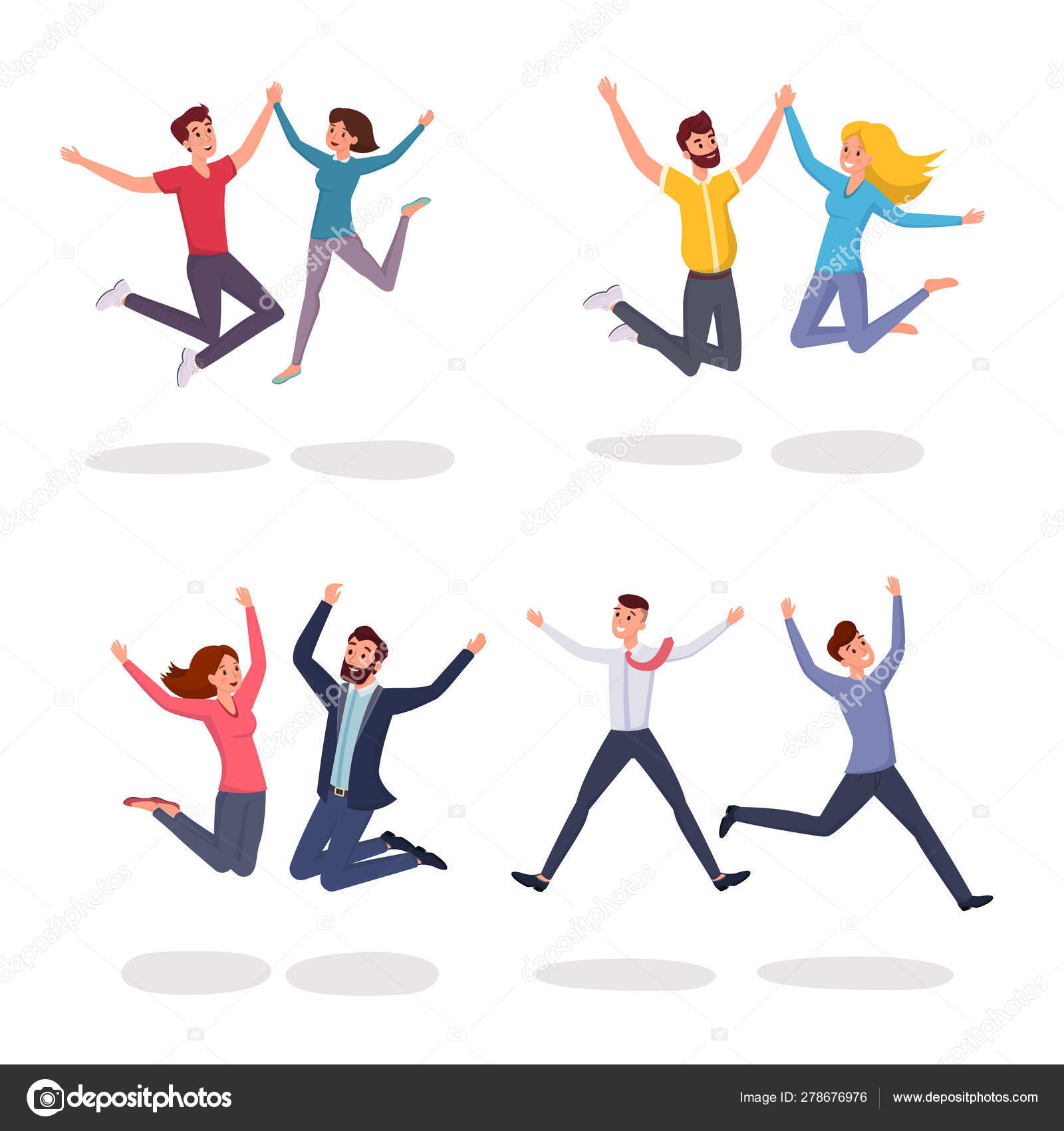 Gruppe Happy Lachende Menschen, Die Springen Und Sieg Feiern.. Paare Von Energie- Und Freundlichen Männern Und Frauen Vektor Abbildung - Illustration von energisch, leute: 208877343