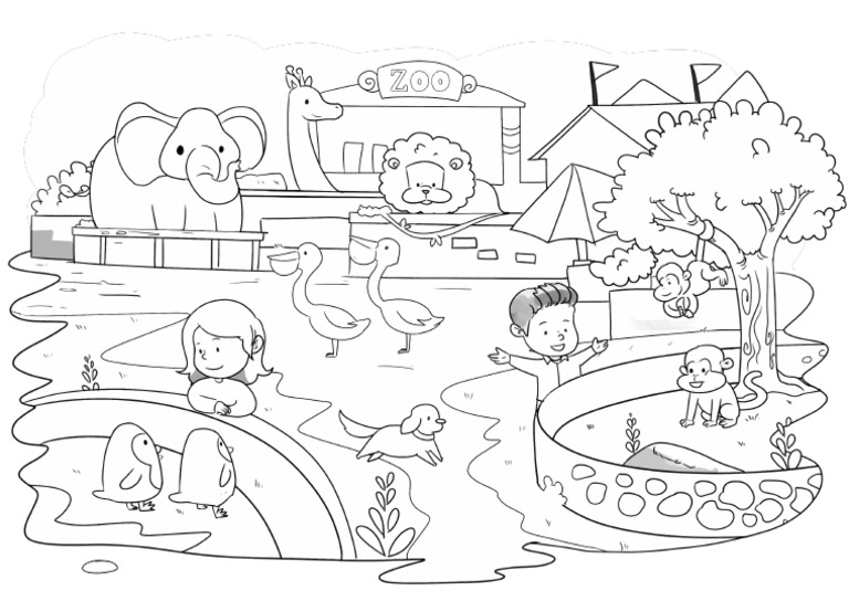 Zoo Niedlich Ausmalbild zum Ausdrucken Kostenlos für Erwachsene und Kinder - Lystok.com