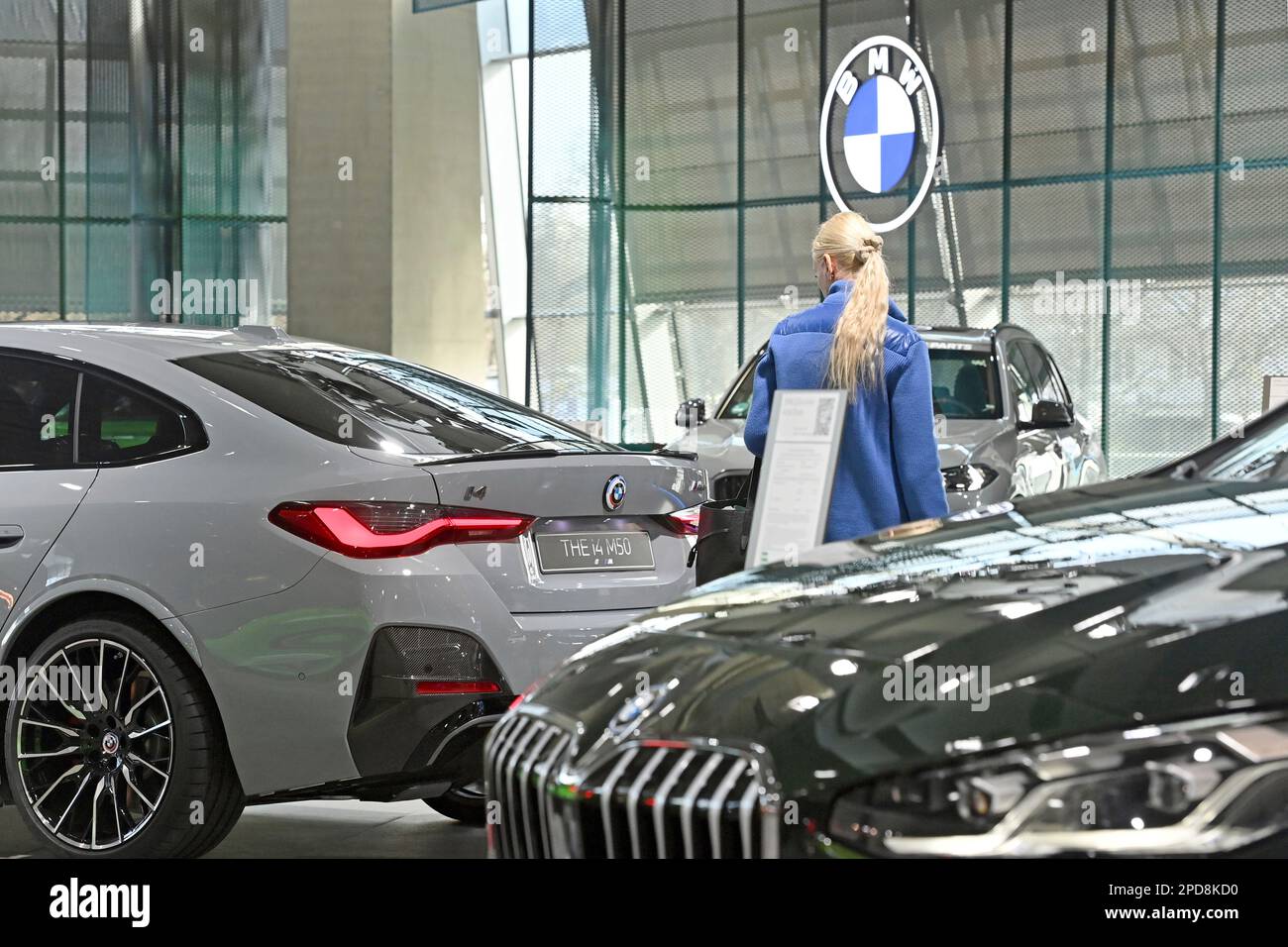 München, Deutschland. 13. März 2023. Besucher interessieren sich für BMW- Modelle, neue Autos im BMW Welt Ausstellungsraum, Autos, Fahrzeugmodelle, am 13. März, 2023 in München? Kredit: dpa/Alamy Live News Stockfotografie - Alamy