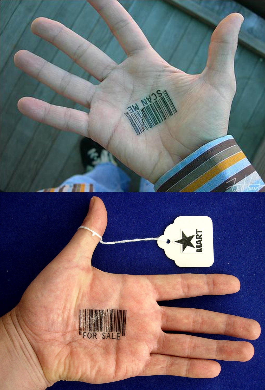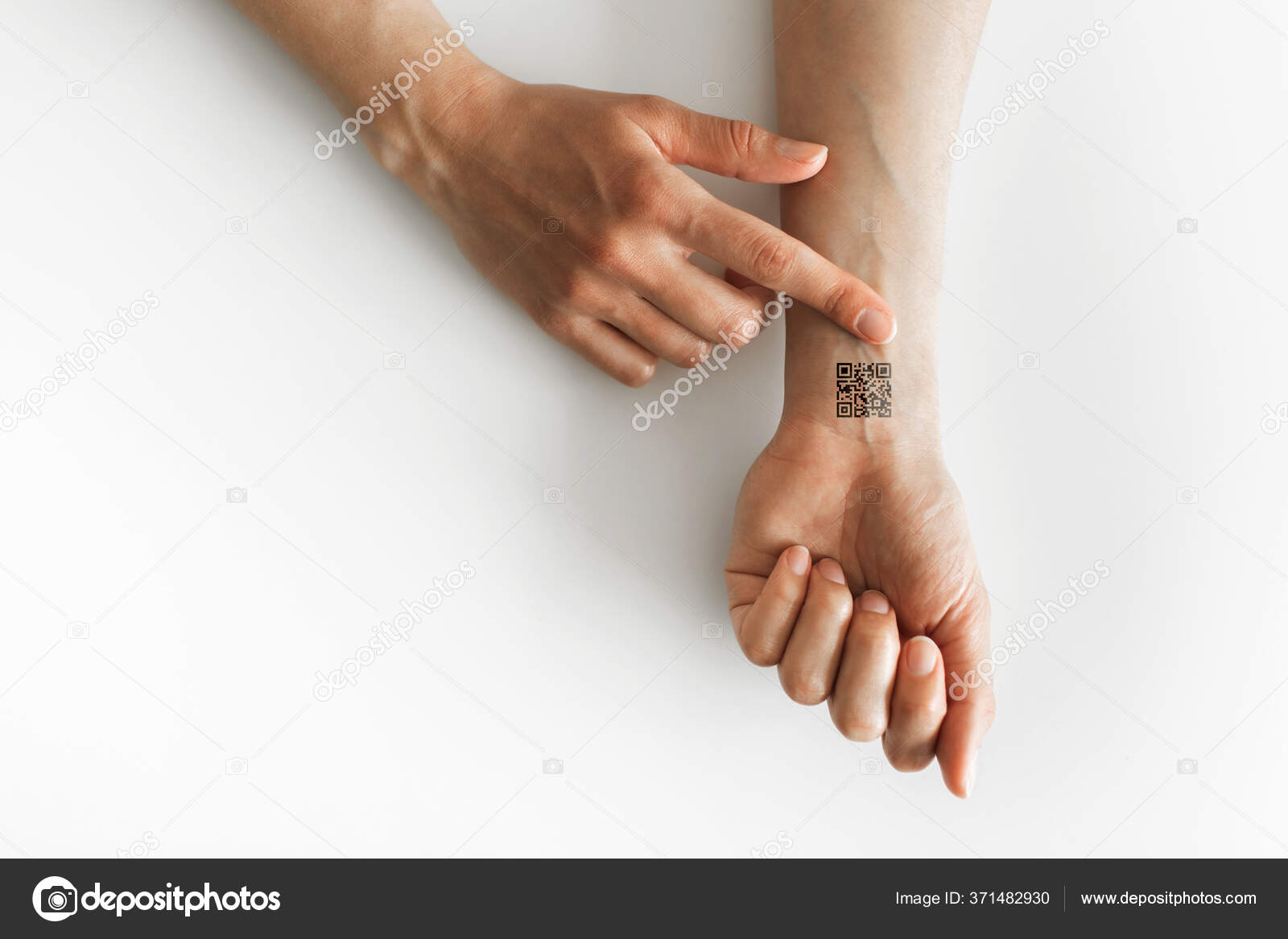 Hand with QR Code on wrist. Future of political population control. Chipization - Creative Commons Bilder
