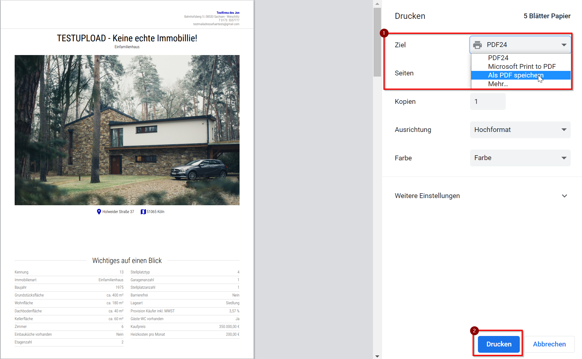 Interaktives Exposé V1 & V2 und Fensteraushang: Als PDF speichern oder ausdrucken – FLOWFACT Serviceportal