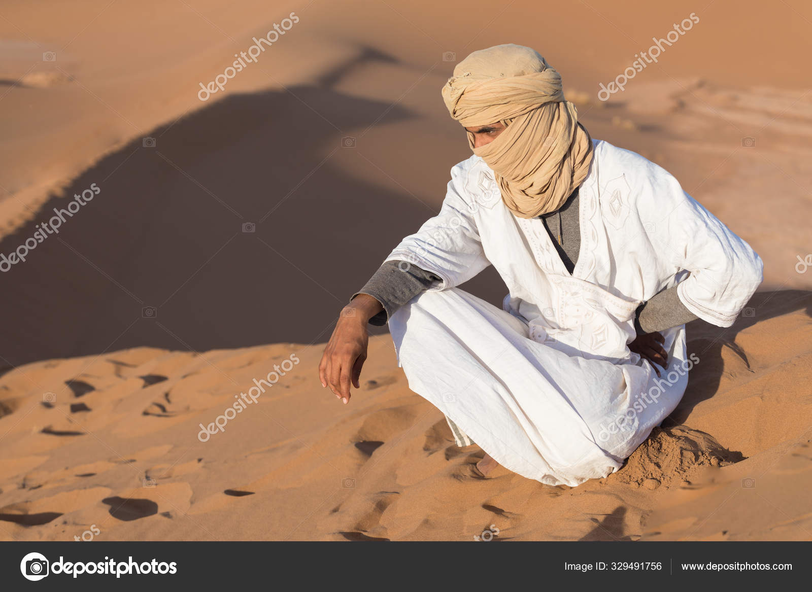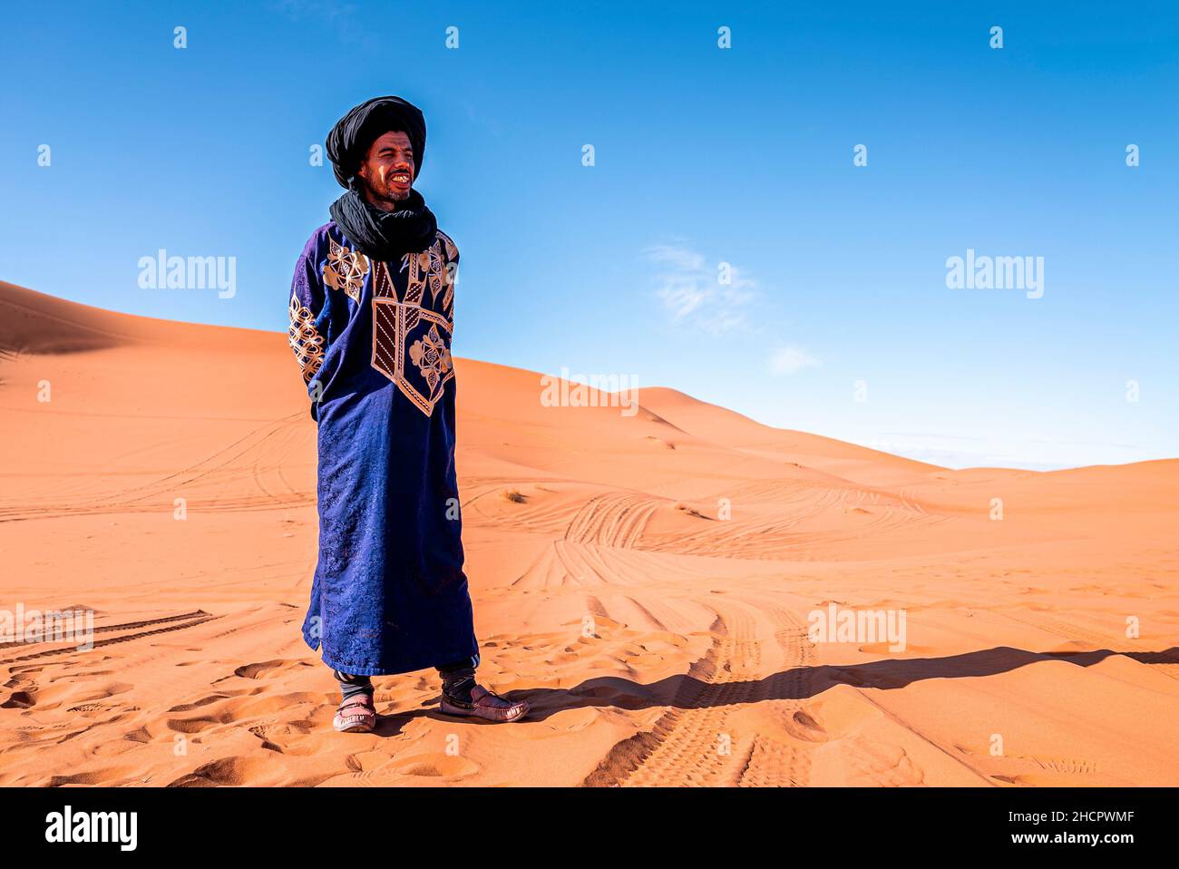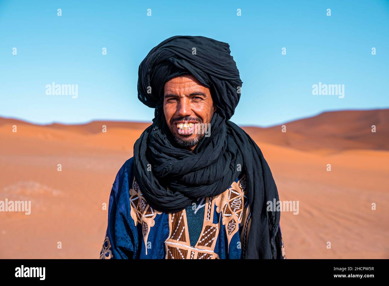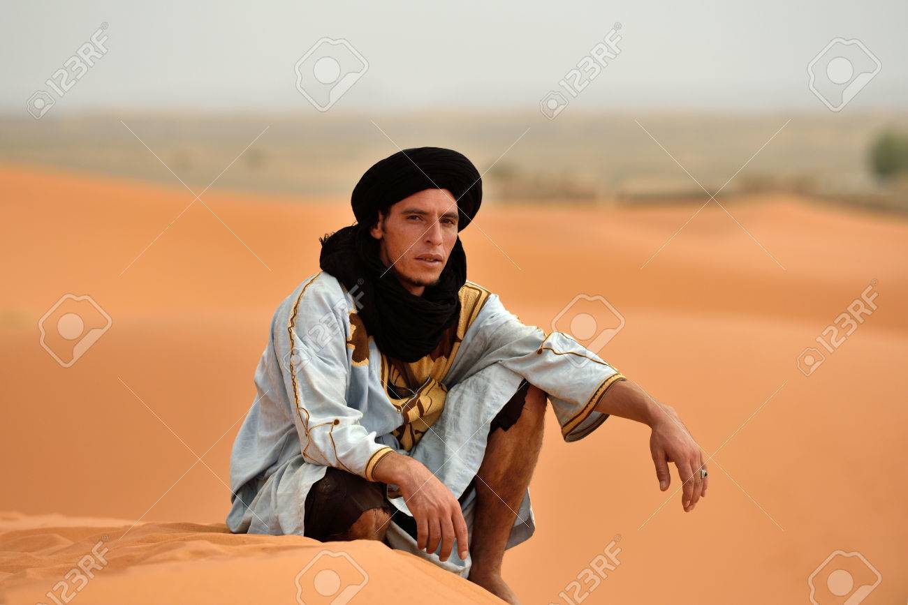 Sahara, Marokko - AUGUST 03: Unidentified Beduinen Mann Trägt Traditionelle Kleidung In Der Sahara-Wüste In Marokko, 03. August 2015. Die Sahara Ist Die Größte Heiße Wüste. Lizenzfreie Fotos, Bilder und Stock Fotografie. Image 43801574.