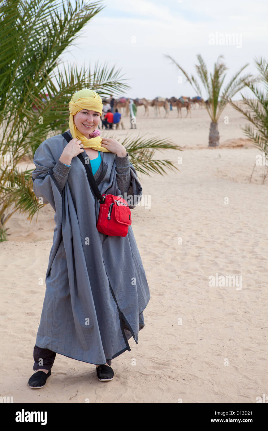 Kaukasischen Weiblichen Person Im Beduinen Kleidung Stehen Auf Düne In Der Wüste Lizenzfreie Fotos, Bilder und Stock Fotografie. Image 16763340.
