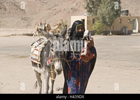 Ägypten, Mädchen, Schleier, Esel, Ziege, Afrika, Oberägypten, Person, einheimischen, Beduinen Kind, Kind, Jugendliche, Beduinen Mädchen, Beduinen, Beduinen, Kleidung, Kopftuch, Hijab, Religion, glauben, Islam, in der Regel traditionell Tiere ...