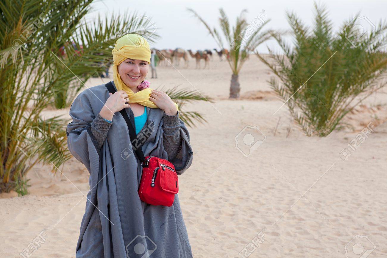 Female In Bedouin Clothes Standing On Dune In Desert Stock Photo, Picture and Royalty Free Image. Image 14127078.