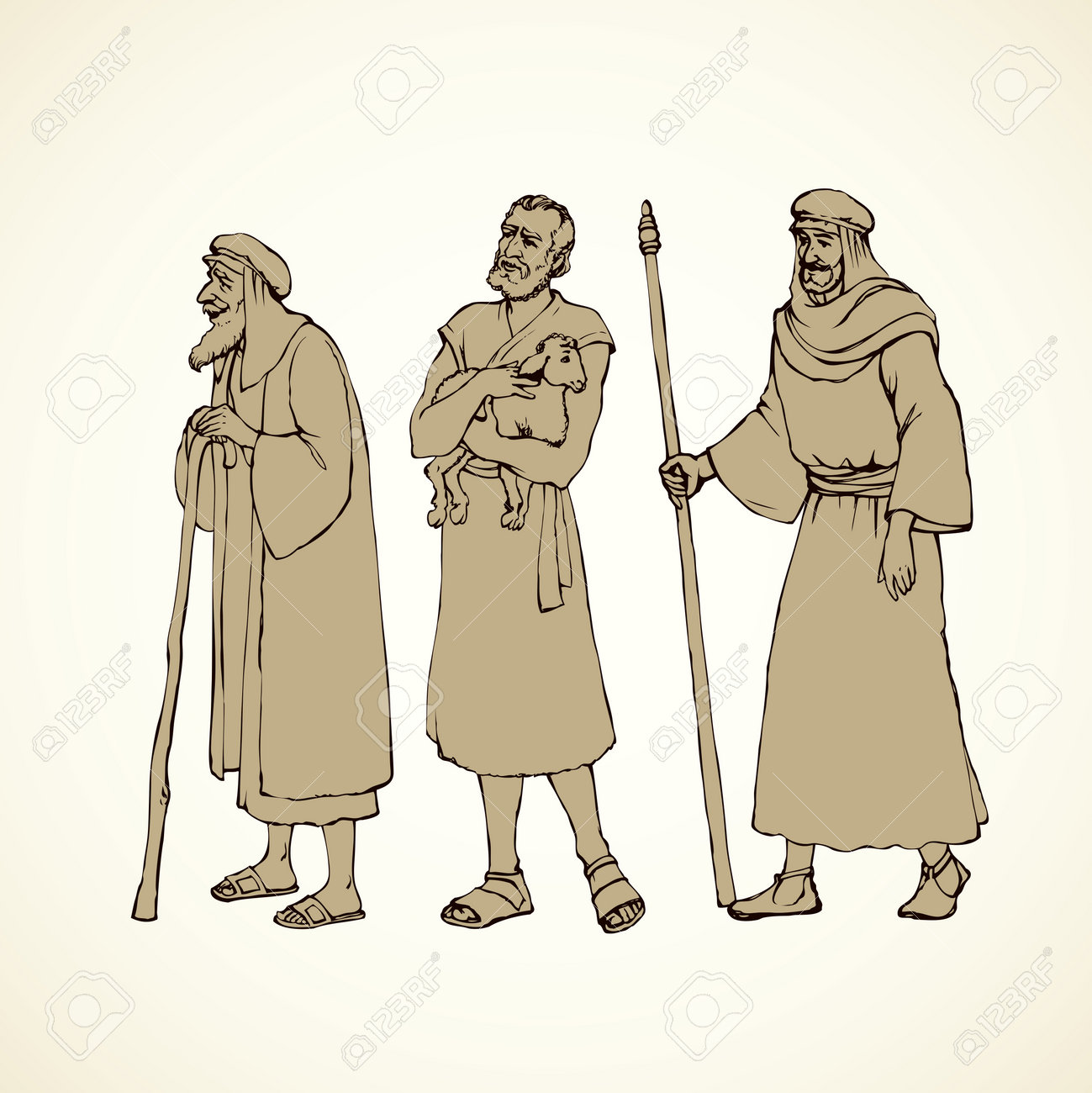 Alter Bärtiger Mittelalterlicher Nomaden-Beduinen-Syrer Mit Lamm In Der Ethnischen Roben-Tunika-Kleidung Des Mittleren Ostens Des Jüdischen Syriens. Schwarze Tinte Handgezeichnet Prediger Symbol Zeichen Symbol Im Retro-Kunst-Grafikstil Stift Auf Papier ...