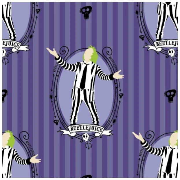 Beetlejuice fabric on purple background by Camelot fabrics ~By The Yard | eBay