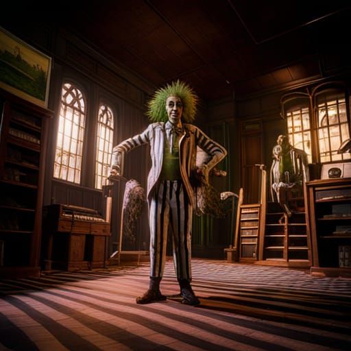 Beautiful magnificent detailed Beetlejuice (1988)in 3d honey ,crystal clear fog ,rain , unreal engine 5 ,128 bit graphics,flashes 24k resolu... - AI Generated Artwork - NightCafe Creator