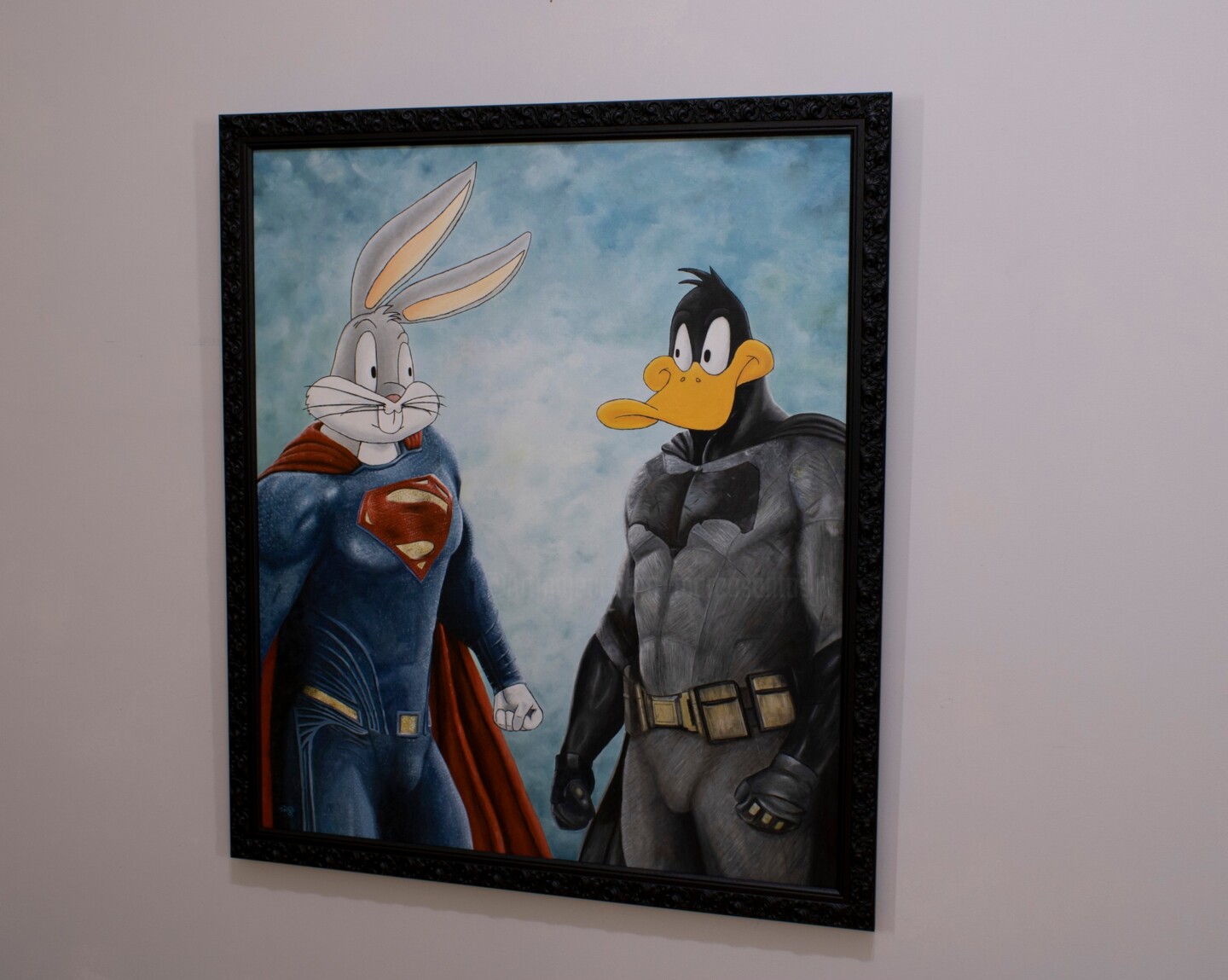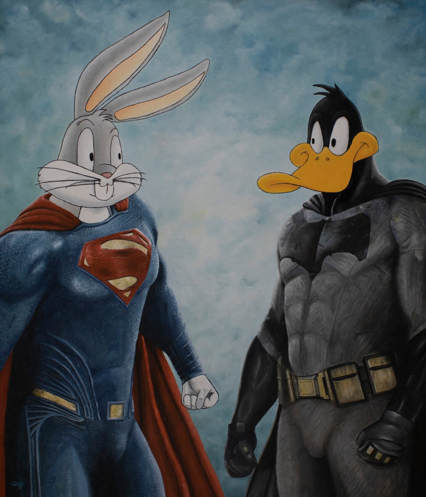 Batduck V Superbunny, Malerei von Marco Santos | Artmajeur