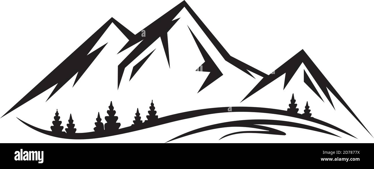 Abstrakte Vektor Landschaft Natur oder Outdoor-Blick auf Berge Silhouette. Berge und Reise-Symbole für Tourismus-Organisationen oder Outdoor-Veranstaltungen und Mount Stock-Vektorgrafik - Alamy