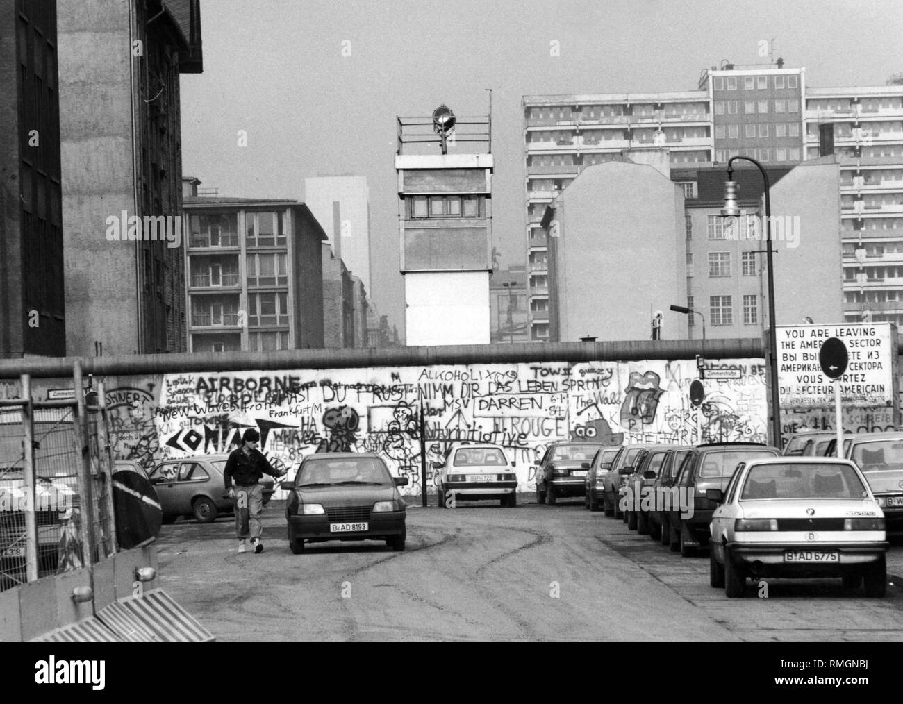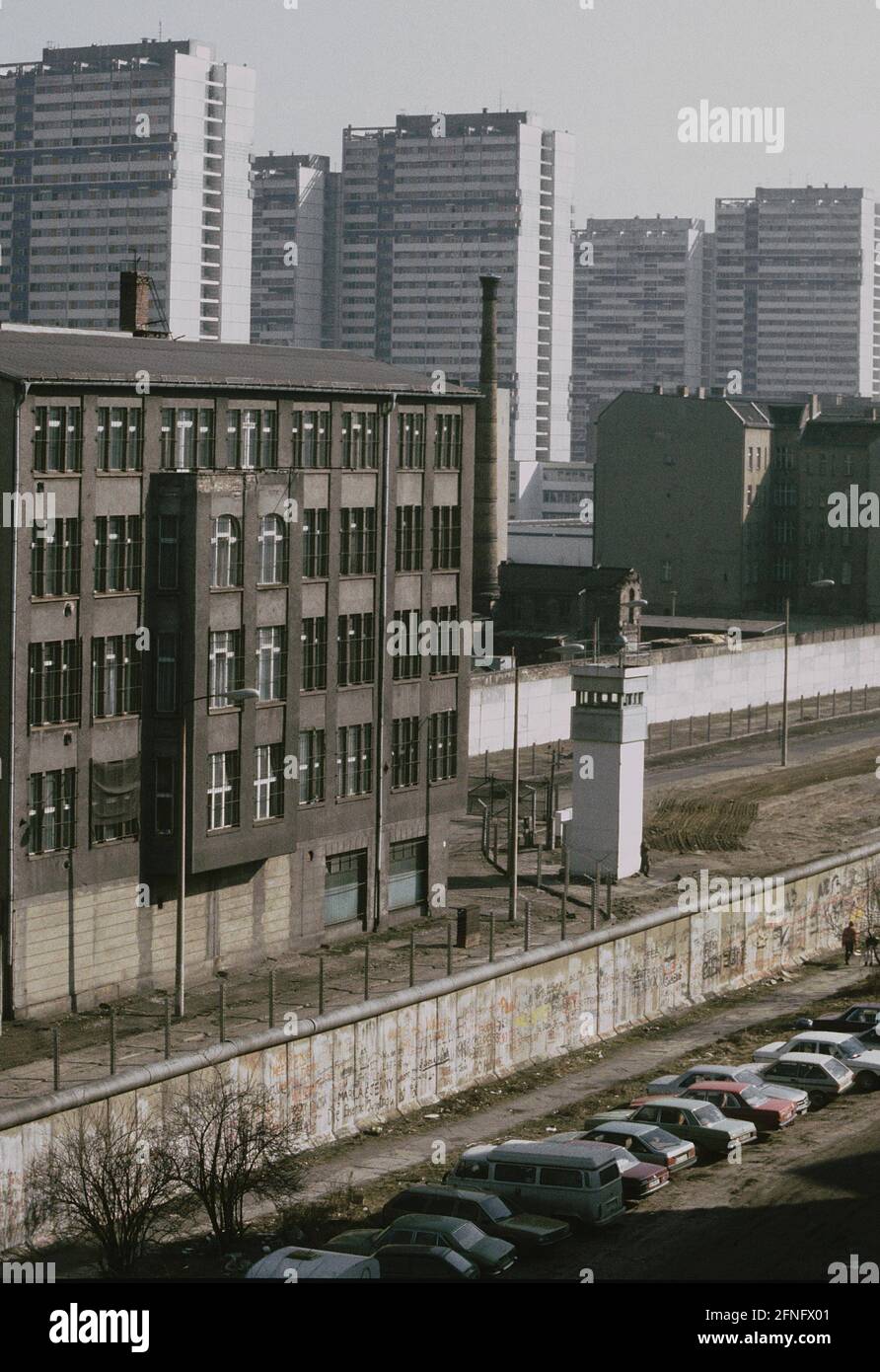 View over the Berlin Wall in 1985 with apartment buildings on both sides, Berlin, Germany, Europe Stock Photo - Alamy