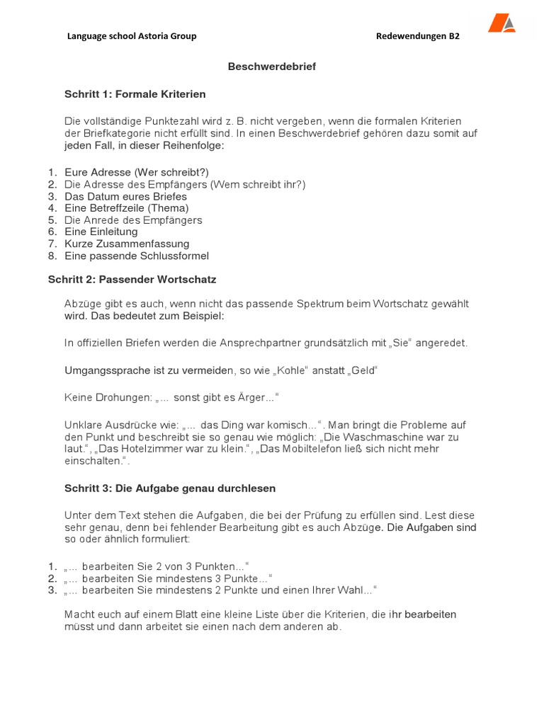 BESCHWERDEBRIEF B2 SPRACHKURS - Deutsch - Viel Spass