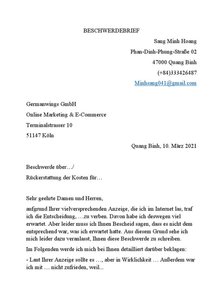 Beschwerdebrief B2 Muster ꧁༺Haare jull༻꧂