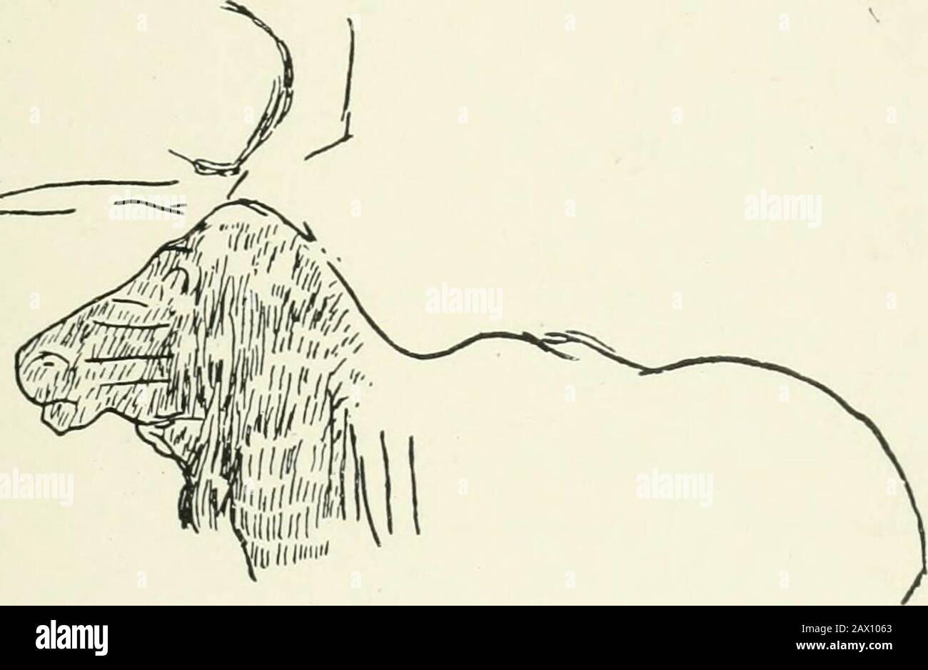 Eine Einführung in die Erforschung der prähistorischen Kunst . ND machte Kopien der Zeichnungen. Unter den vertretenen Tieren sind Bison, Pferd, Rentier, und Mammut. Alle werden im Profil gezeichnet. Einige sind grausam