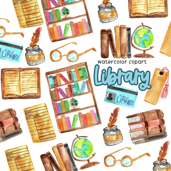 Clipart della biblioteca dell'acquerello, libreria del bibliotecario, grafica di ritorno a scuola in formato png per il download digitale per uso commerciale - Etsy Italia