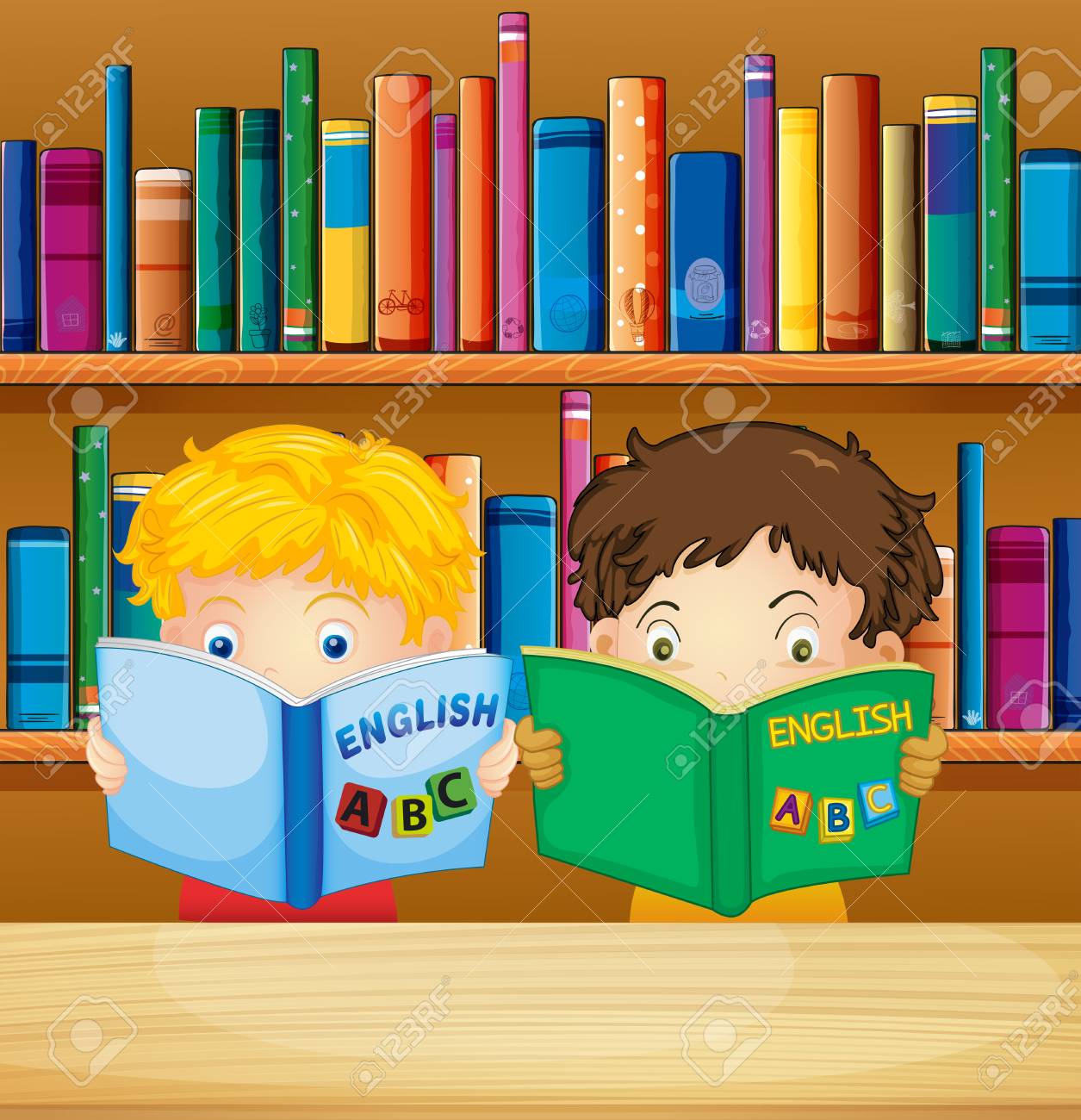 Boys Reading Books In Library Illustration Royalty Free SVG, Cliparts, Vectors, and Stock Illustration. Image 82339478.