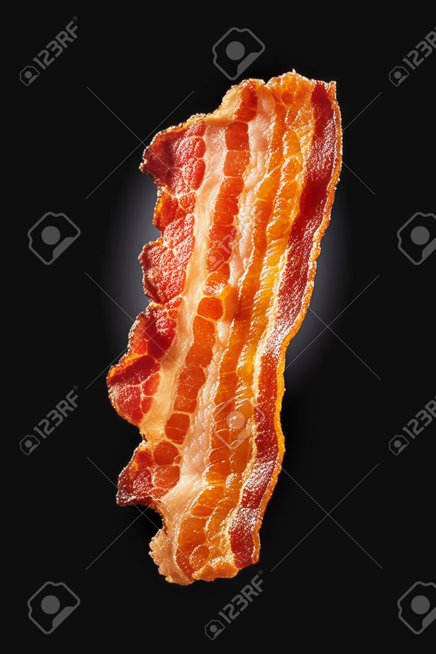 Eine Scheibe Appetitlich Gebratenen Specks Auf Dunklem Hintergrund. Heißer Speck Mit Dampf. Von KI Generiert Lizenzfreie Fotos, Bilder und Stock Fotografie. Image 205884152.